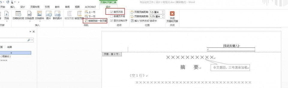 然后页面上方可以看到页眉的设计来设置首页不同
