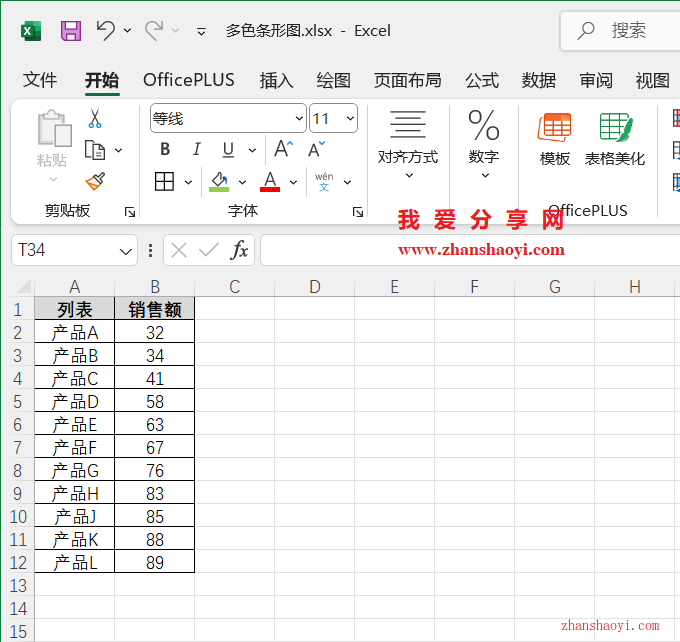 1、先打开Excel 2024软件,然后在单元格中输入如下示例数据,为某公司产品的销量统计表;