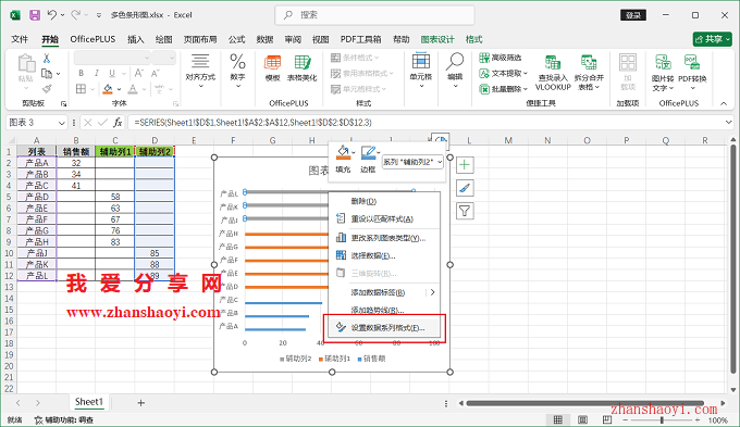 6、第三步,调整条形宽度,鼠标右击条形选择【设置数据系列格式】;