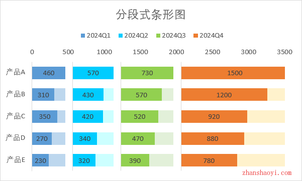 本期给大家分享多段式条形图,适用于呈现多类别、多系列的单一指标图表,但单一指标有时各系列数量级差异不大,通过分段式直观突出对比性;