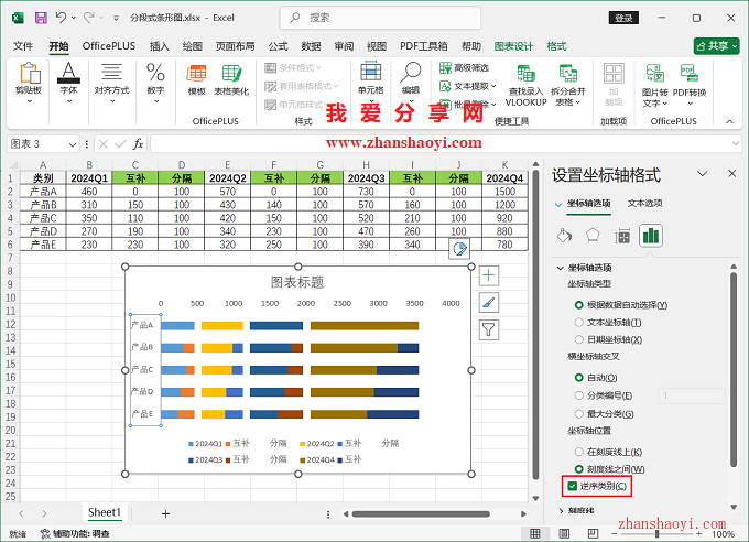 13、修改标题,调整图例位置,基本完成分段式条形图如下: