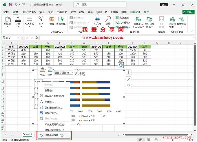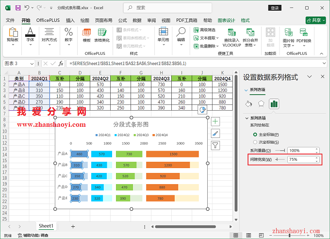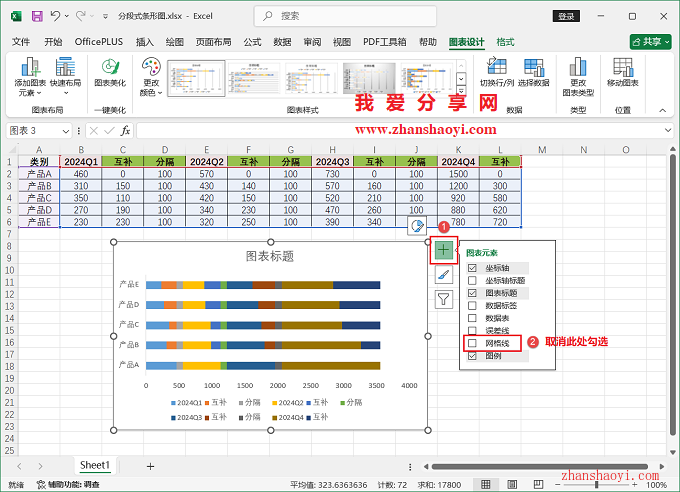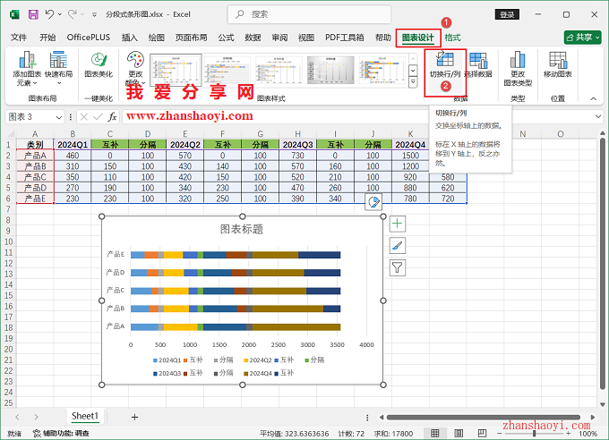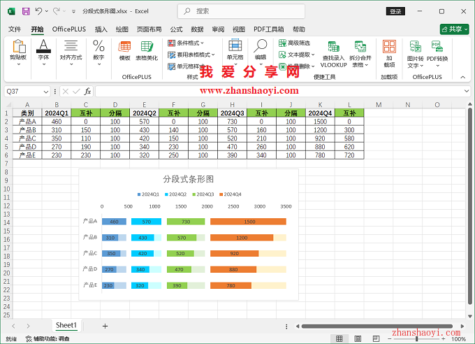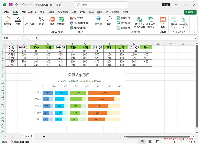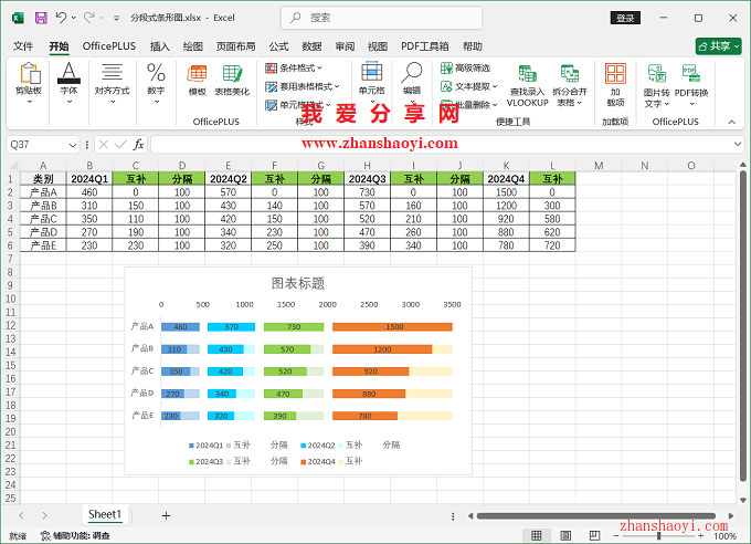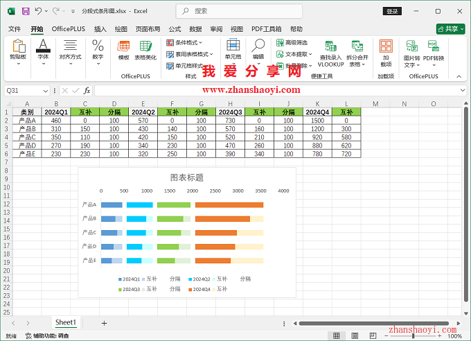 11、初步完成分段式条形图效果如下: