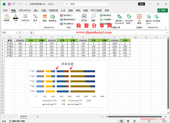 16、最后,手动插入直线,完成多段式条形图如下,希望本文分享的内容对你有所帮助~~