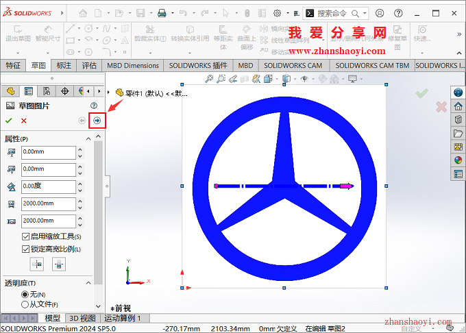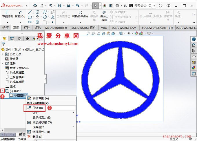 10、在左侧设计树中草图下有个「草图图片X」选项,鼠标右击选择【压缩】;