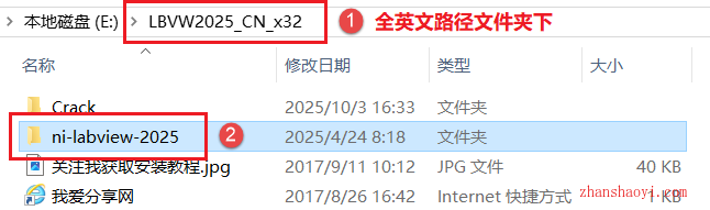 1、先使用“百度网盘”下载LBVW2025_CN_x32.7z软件安装包到电脑磁盘英文路径文件夹下,并鼠标右击进行解压缩,安装前先断开电脑网络,然后双击打开ni-labview-2025文件夹;