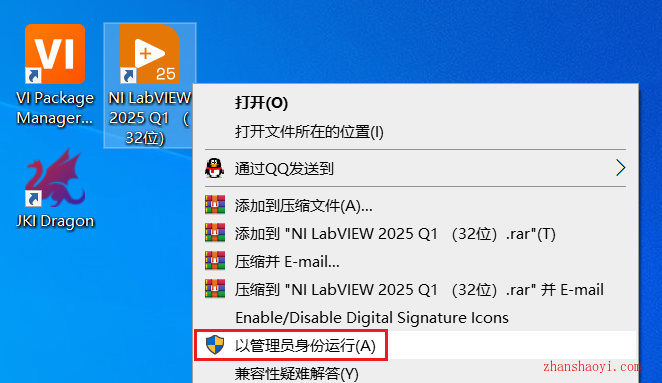 17、返回电脑桌面,找到LabVIEW2025图标,鼠标右击选择【以管理员身份运行】;