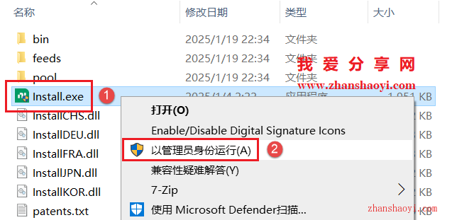 2、在文件夹内找到Install.exe,鼠标右击选择【以管理员身份运行】;