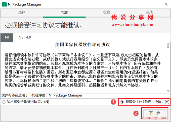7、许可协议,先勾选“我接受…”,然后点击【下一步】;