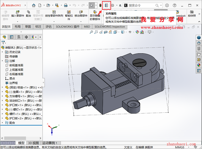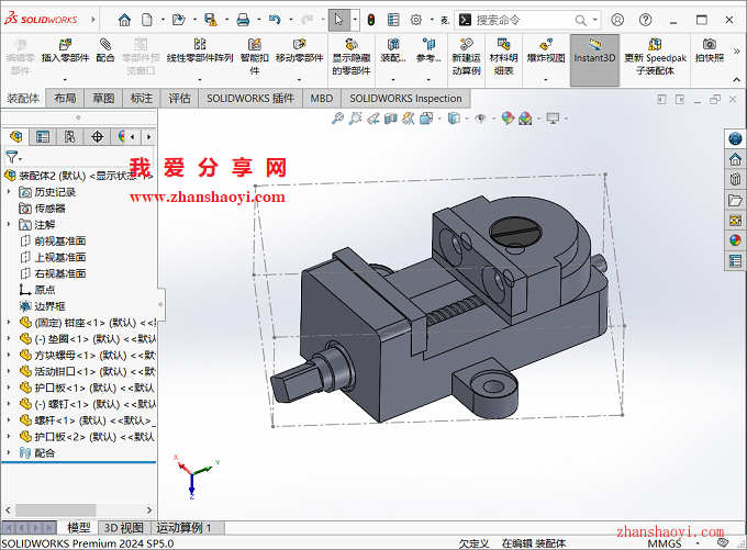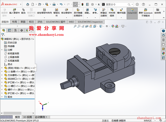 1、先打开SolidWorks 2024软件,打开如下示例装配体模型;