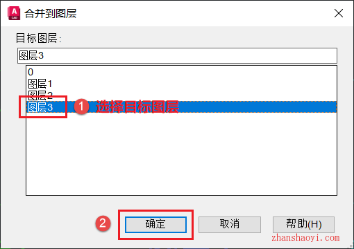 5、打开「合并到图层」对话框,这里我们单击选择目标图层为「图层3」,然后点击【确定】退出;