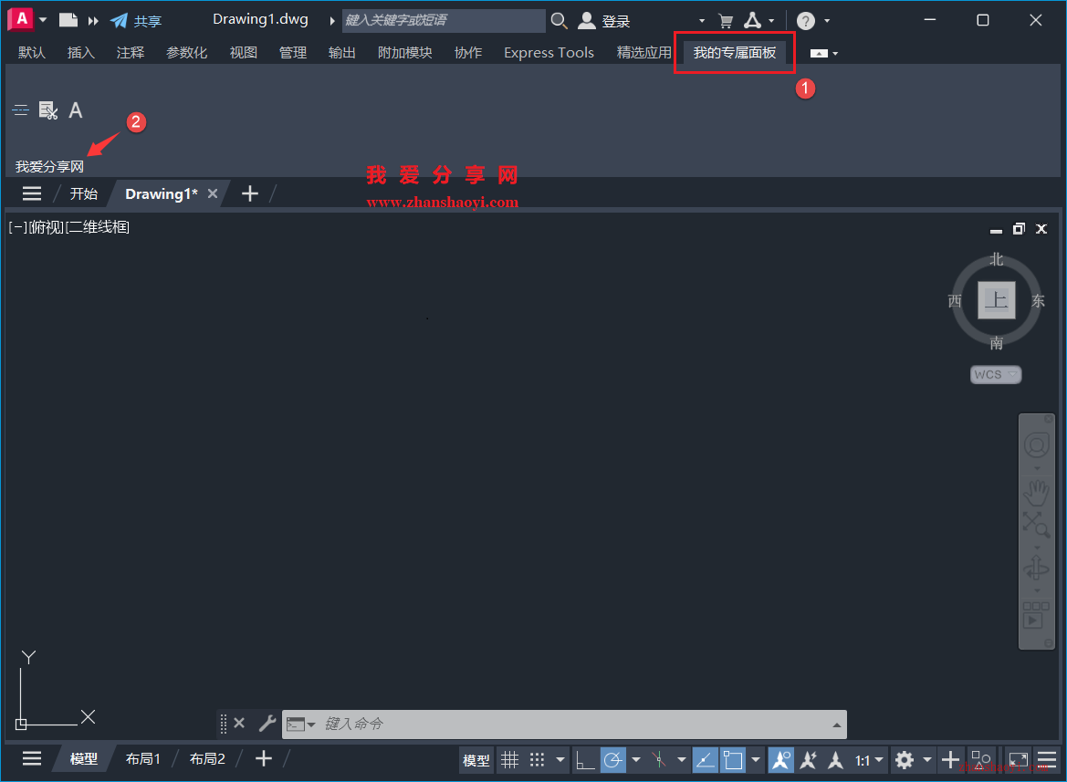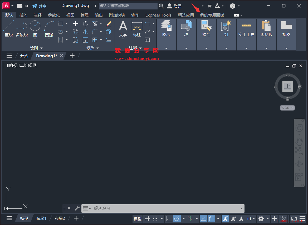 12、返回到CAD界面,我们可以看到上方多了一个选项卡【我的专属面板】;