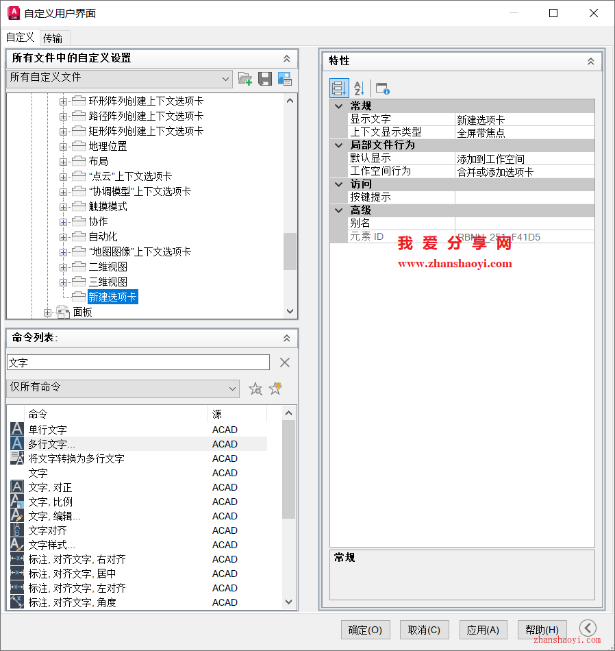 14、再返回到CAD界面,如下,上步中修改的第一个功能图标下已正常显示文字,其它可类似操作,不再赘述,希望本文分享的内容对你有所帮助~~
