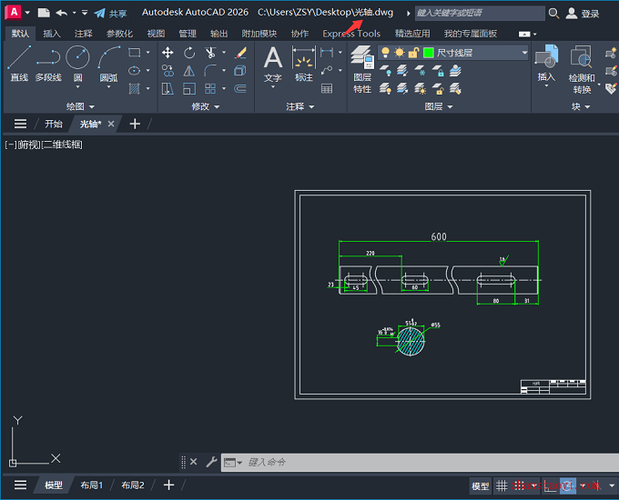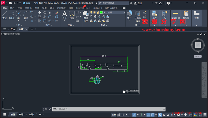 3、返回CAD界面,在界面抬头已显示出图纸文件的地址,希望本文分享的内容对你有所帮助~~