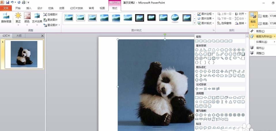 3、单击图片(图片四周出现四个小正方形和四个小圆)—选择"格式"功能下的“裁剪”