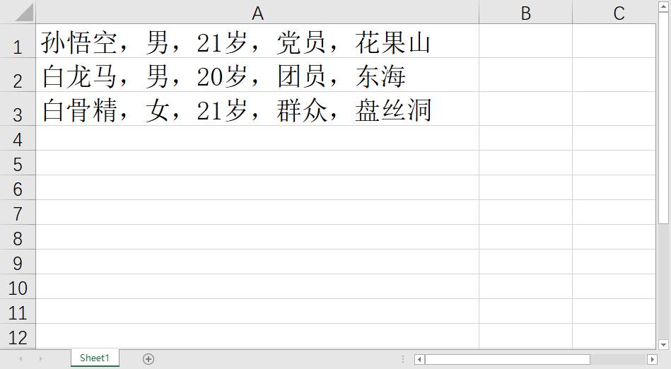 1.打开 Excel,将 Word信息复制粘贴到 Excel中,可以看到,每行信息在同一个单元格。
